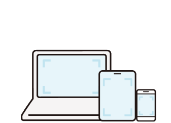 お手持ちのパソコンやタブレット、スマホから、ブラウザを開き専用ページにアクセスして使っていただけます。